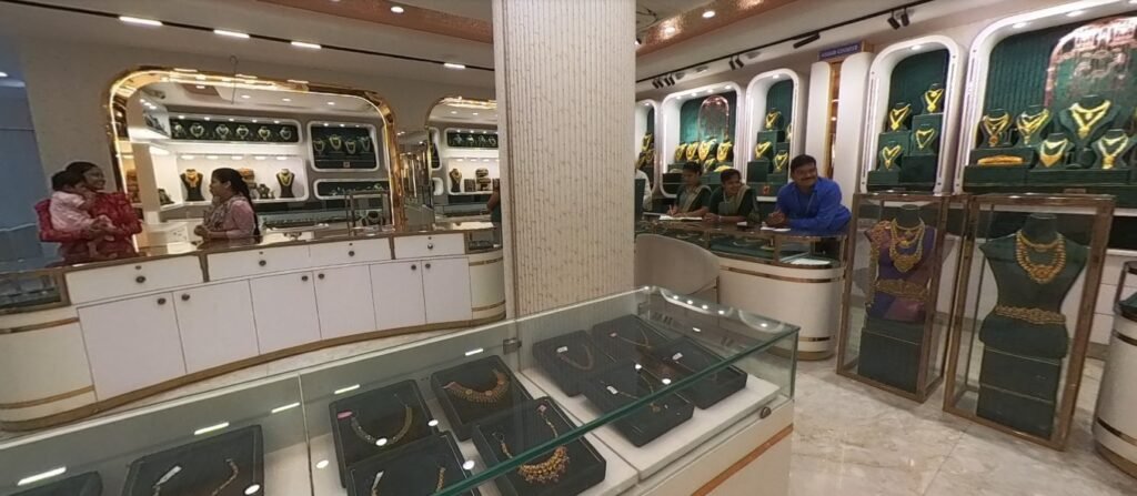 Every corner of the showroom reflects our commitment to quality — from beautifully lit display counters that highlight the brilliance of each piece, to dedicated sections for bridal jewellery, daily wear collections, antique designs, and diamond creations. Our customers can explore jewellery at their own pace, guided by our friendly experts who ensure complete transparency and support at every step.